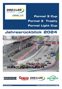 www.afr-pokale.com Drexler Automotive Formel Cup 2024 Auf diesen Seiten finden Sie detaillierte Informationen zur Deutschen Formel 3, der Formel 3 Europa Meisterschaft, der DDR-Meisterschaft und den FIA-Prädi- katsläufen von 1948 bis heute, sowie zum Drexler Formel 3 Cup, der Österreichi- schen Rennwagen Meisterschaft und der ADAC Formel 4. - Programmhefte mit Starterlisten und Streckenskizzen - Ergebnisse der Rennen und Trainings sowie Startaufstellungen - Chassisnummern aller Fahrzeuge - Alle Formel-3-Meister weltweit - Fotos aller Fahrzeuge und Fahrer - und vieles mehr... Ein Besuch lohnt sich! FORMEL CUP